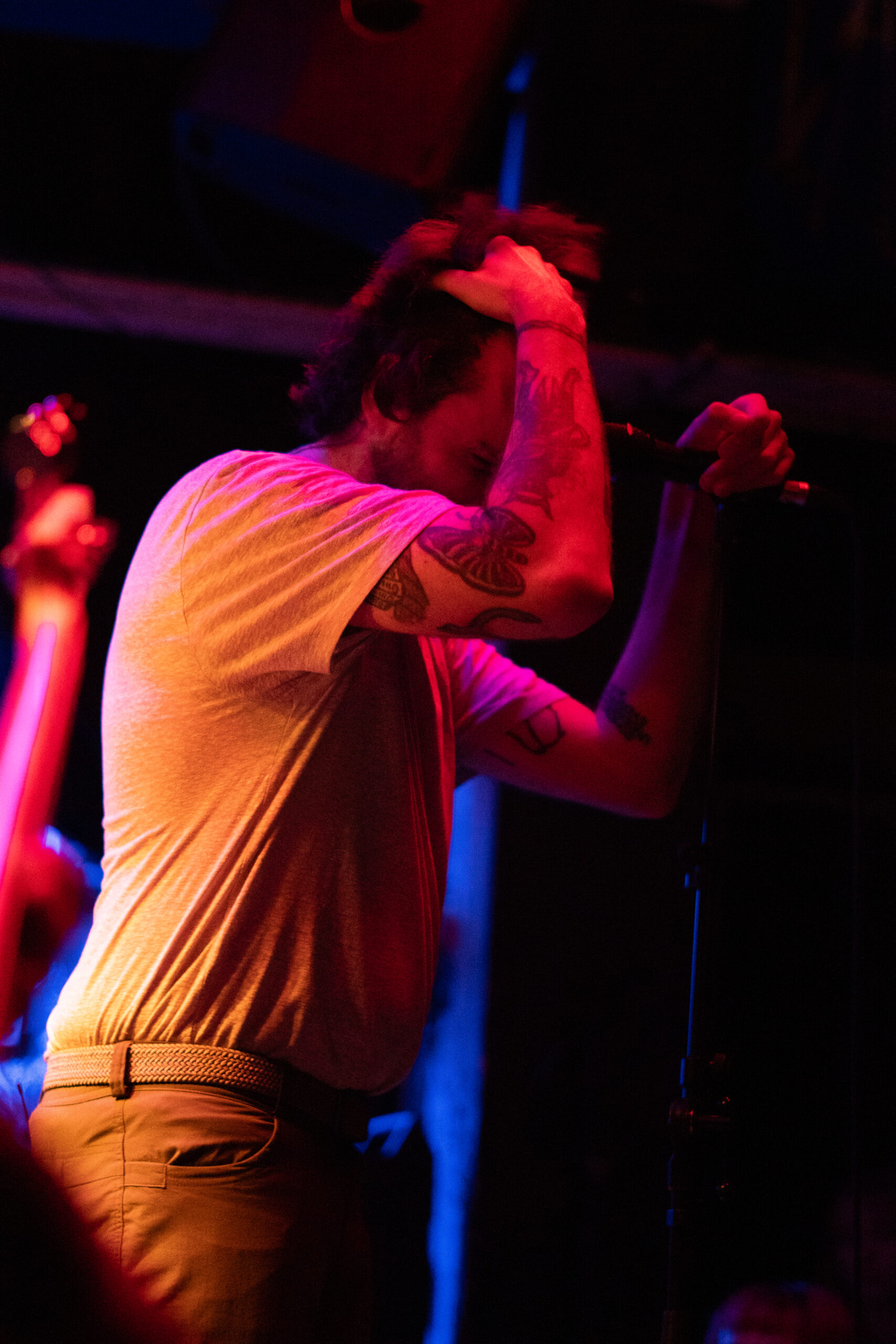 Co mě ale bavilo extrémně, byli Lastelle. WHAT DO YOU MEAN, že má bubeník Mike lepší vocals než půlka frontmanů?! Celkově to byl neskutečně zábavnej set se skvělou komunikací směrem ke crowdu. Jsem si celkem jistá, že si tahle britská parta z Bike Jesus odváží dost nových obdivovatelů a to nejen díky tomu, že frontman Adam strávil snad tři čtvrtě koncertu přímo v crowdu, takže o nějaký bariéře mezi pódiem a fans nemůže bejt řeč. Za zmínku určitě stojí, že Lastelle v několika sonzích vytáhli i trumpetu, což, ruku na srdce, na post-hardcorovým koncertě jen tak nevidíš. Sympatická byla i děkovačka headlinerům celý tour Casey, bylo znát, že jsou Lastelle velký fandové, což jsme pak mohli vidět i během samotnýho setu hlavních hvězd – let’s just say, že to vedle podia docela rozjížděli. 🤟