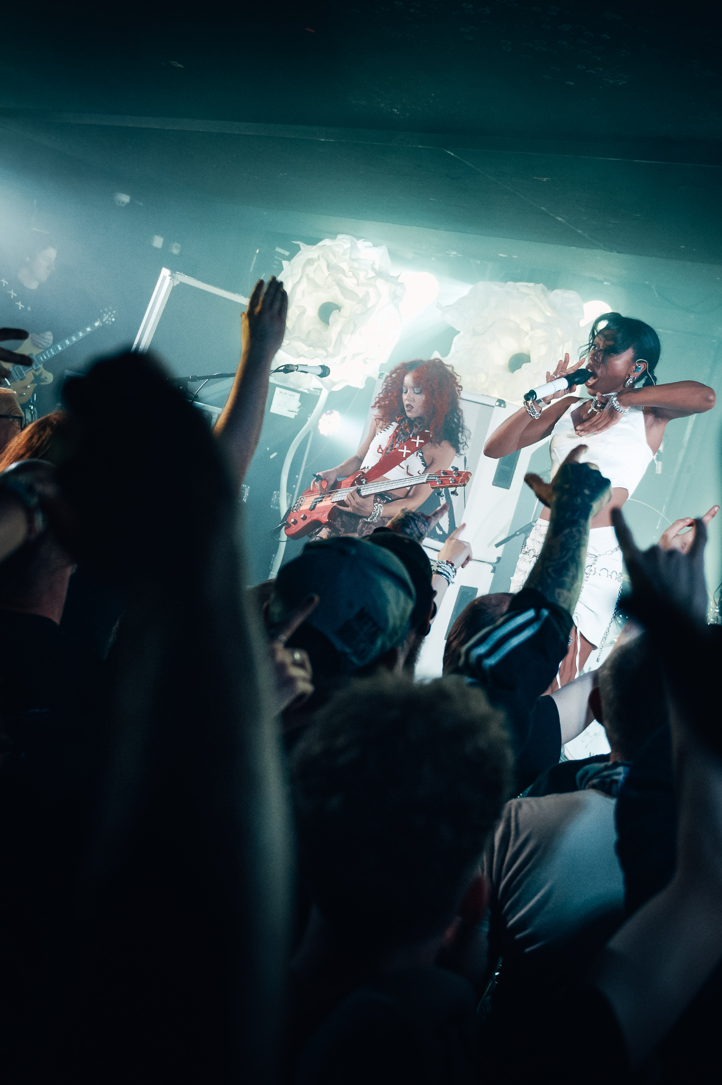 A Nova Twins? Ty vzaly pódium doslova útokem. Sotva se objevily na stagi, energie, v teď už zaplněném sále, nabrala na obrátkách. Tyhle dvě Britky na nic nečekaly a show odstartovaly svižnou rytmickou písní Black Roses z posledního alba, čímž hned od začátku dávaly fanouškům jasně najevo, že pojedou naplno až do úplného konce. Neustále burcovaly obecenstvo ke zpěvu či tleskání a s každou další skladbou atmosféra v místnosti jen sílila. Publikum, složené z velmi rozmanitých věkových kategorií, reagovalo bouřlivými moshpity i aktivními crowdsurfery, což jen dokazovalo to, jak moc si všichni vystoupení užívají.
